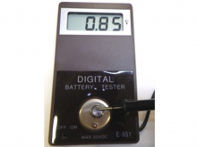 新しい電池は1.57V前後あります。残電圧が少ないのを確認してから交換します。